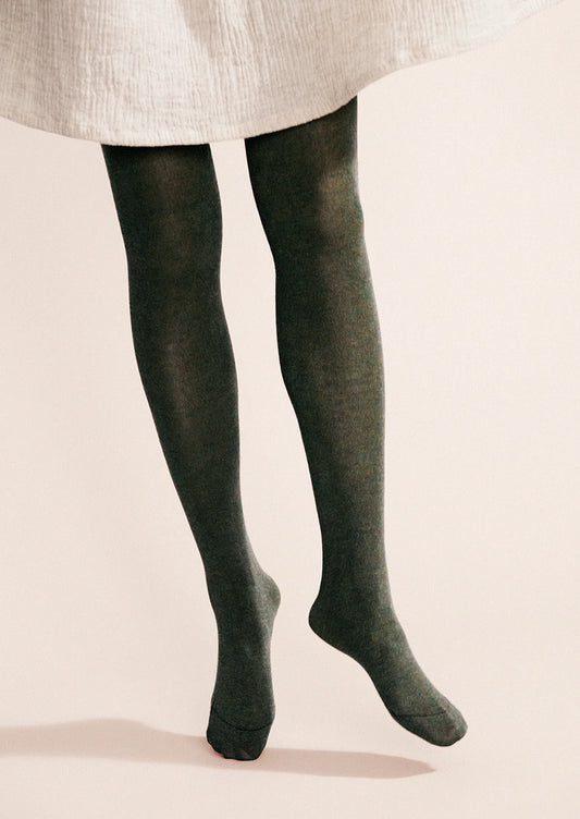 • A person wearing knit tights in black.