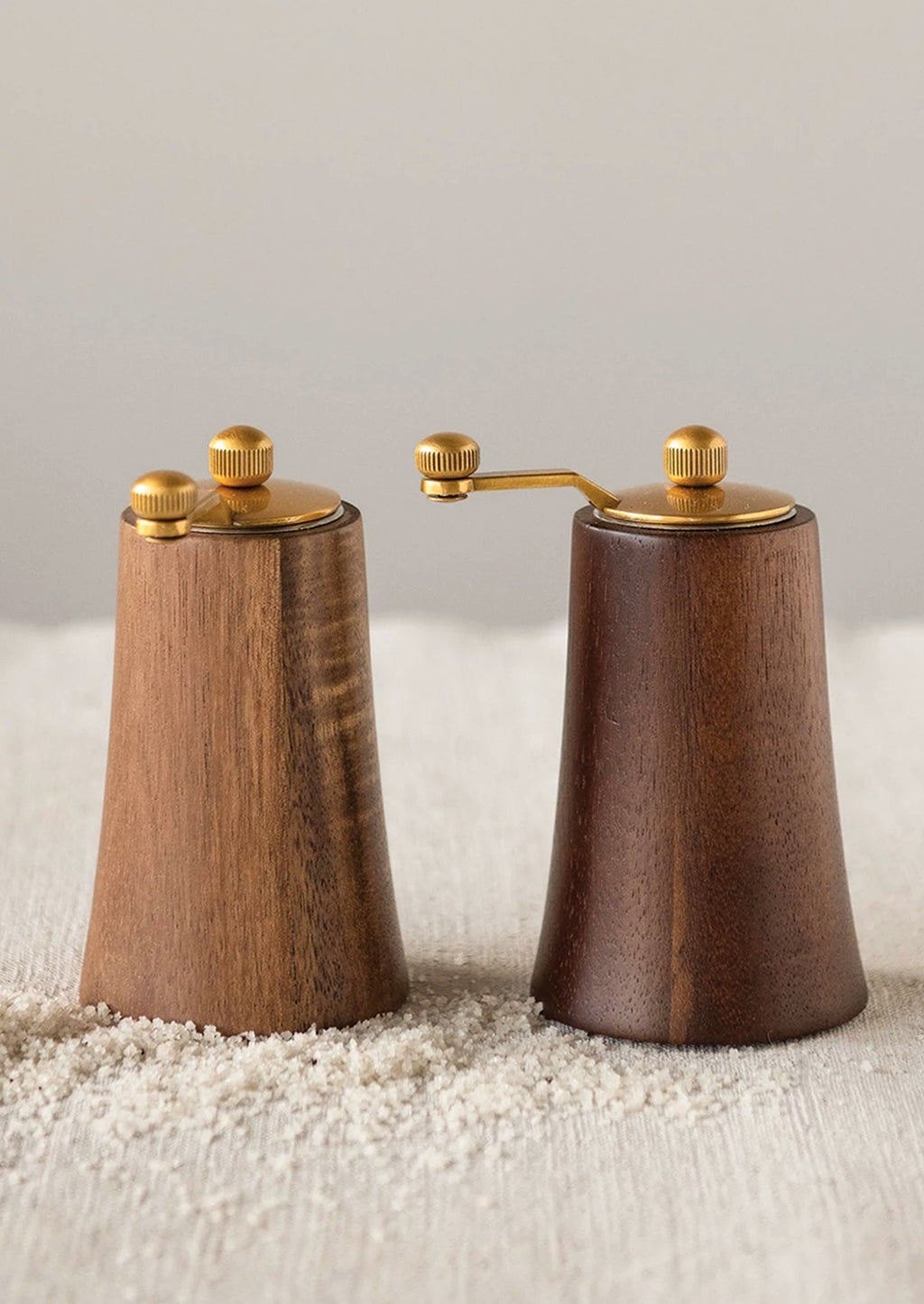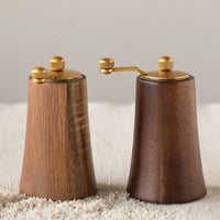 Showing off a classic construction inspired by mid-century designs, this manual salt and pepper grinder works by simply turning the top thanks to a built-in grinding mechanism. Beautiful as a pair, they can also be used for other whole spices like cloves, pepper flakes, etc.