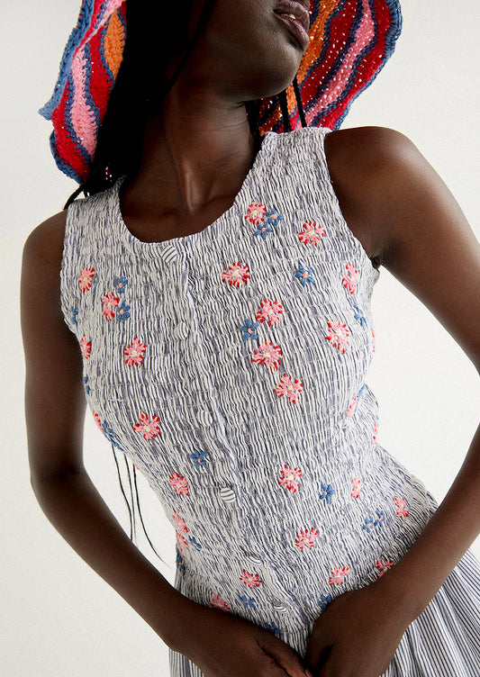 Laila Embroidered Seersucker Dress
