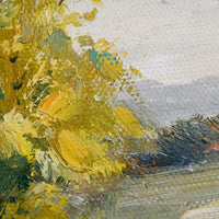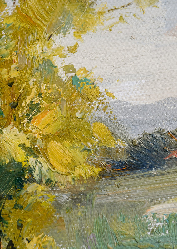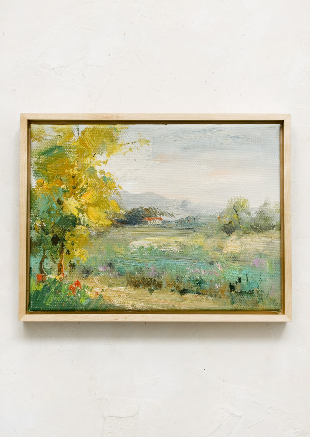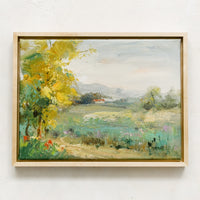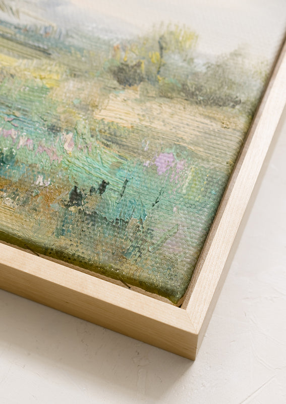 Painted in oil with thoughtful, thick brushstrokes and the perfect amount of texture, this original landscape painting shows off a rich and vibrant palette in a low-profile natural maple frame.