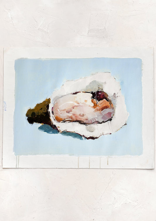 • An original landscape oil painting of a countryside setting with a barn-like structure.