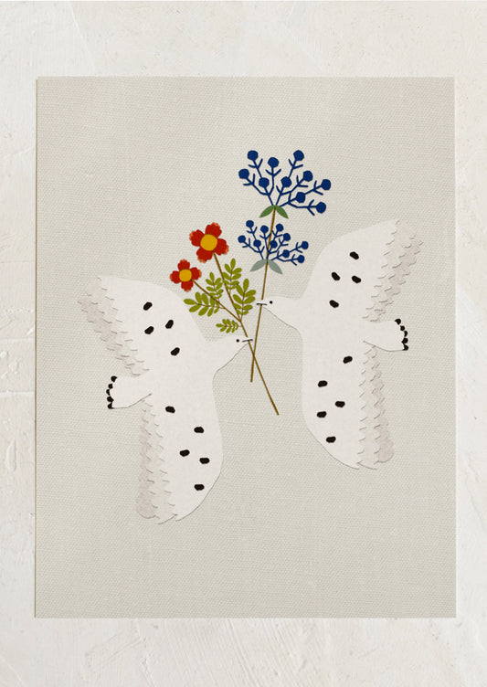 • An art print of an original collage of a woman wearing a dress made from newspaper.