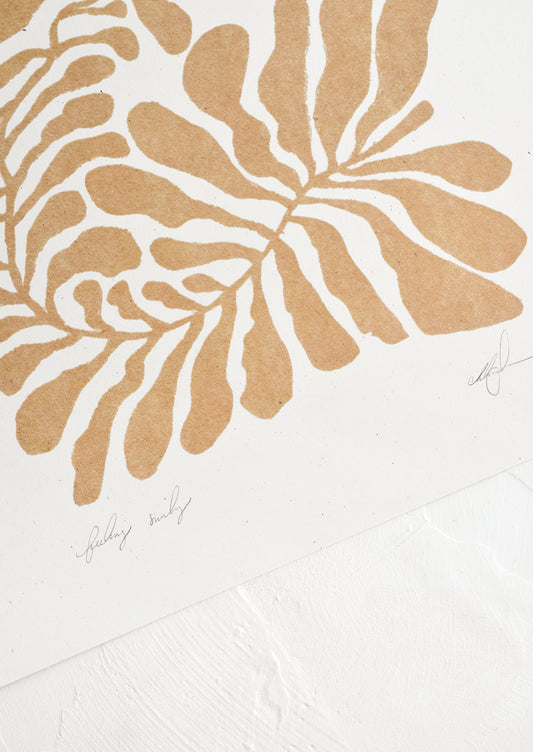 • A digital art print of a curled leaf form in brown.