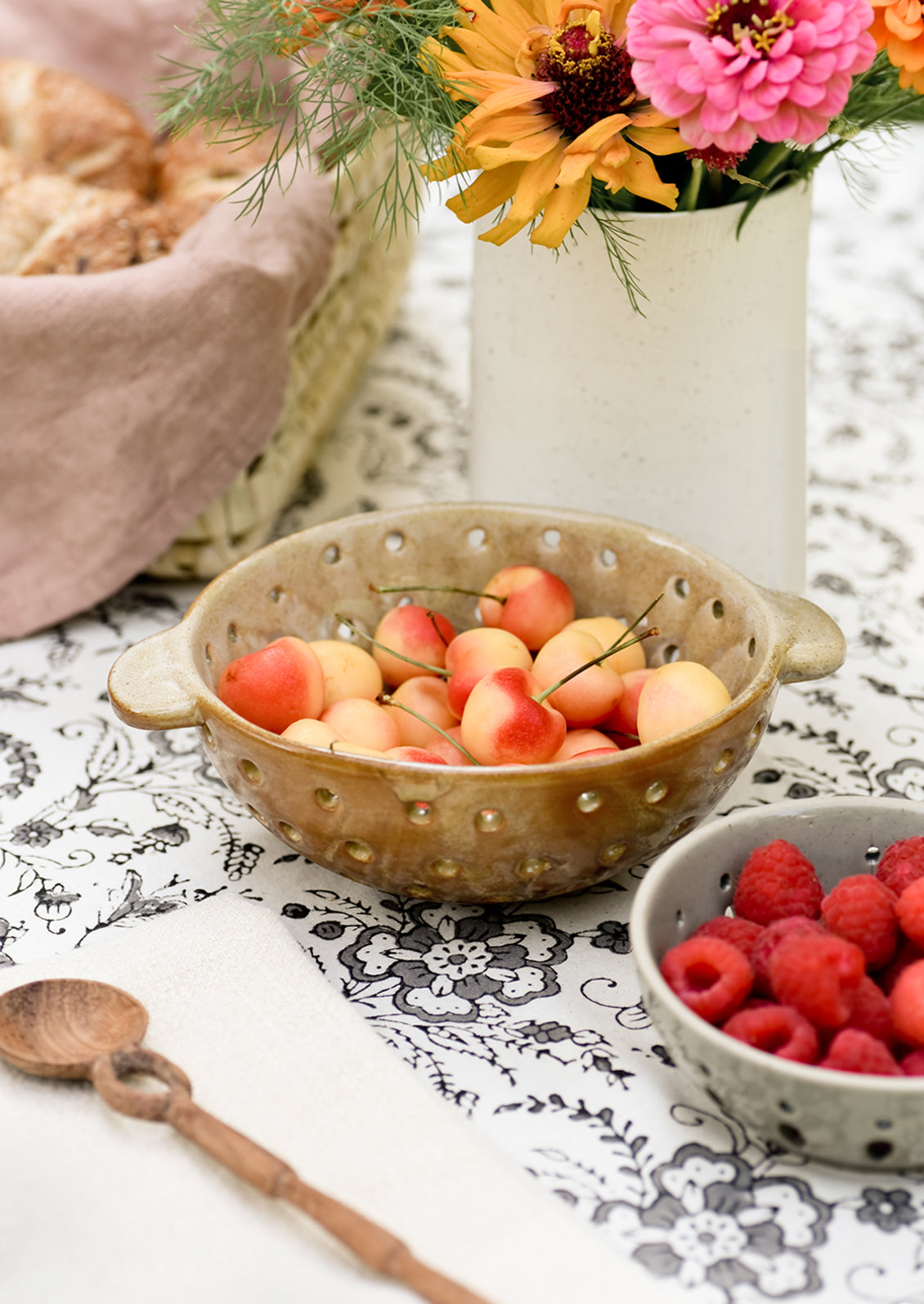 In glazed ceramic, this rustic wonder presents itself as a cross between a colander and berry bowl (and can be used as both, of course). Rinse and eat everything from berries, cherry tomatoes, herbs, foraged mushrooms and small veggies.