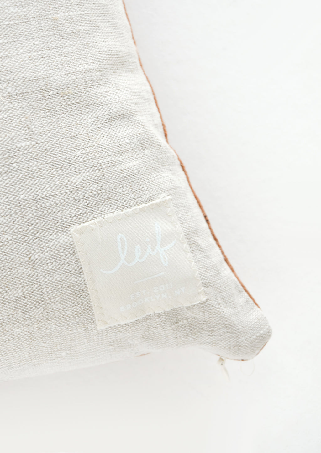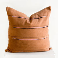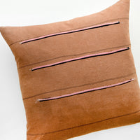 Cut from vintage fabric that we source in Thailand and sew in our Brooklyn studio, this pillow has a story to tell—and it shows in its rich texture and character. Hand-stitched appliqué stripes in a pink and black offer an appealing color balance.