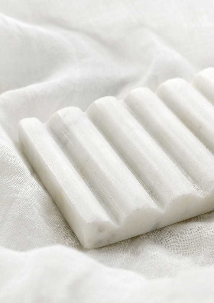 In solid marble, this soap dish is a classic, showing off a fluted scallop silhouette.