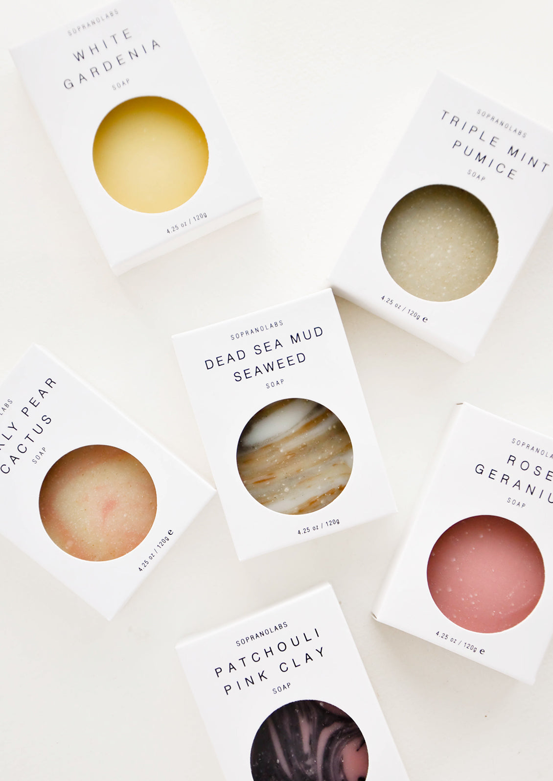 Made entirely with vegan and natural ingredients, SopranoLabs' bar soap is handcrafted in small batches and contains no artificial fragrances or preservatives—a base of organic vegetable oil and essential oils makes for a nourishing and moisturizing lather.