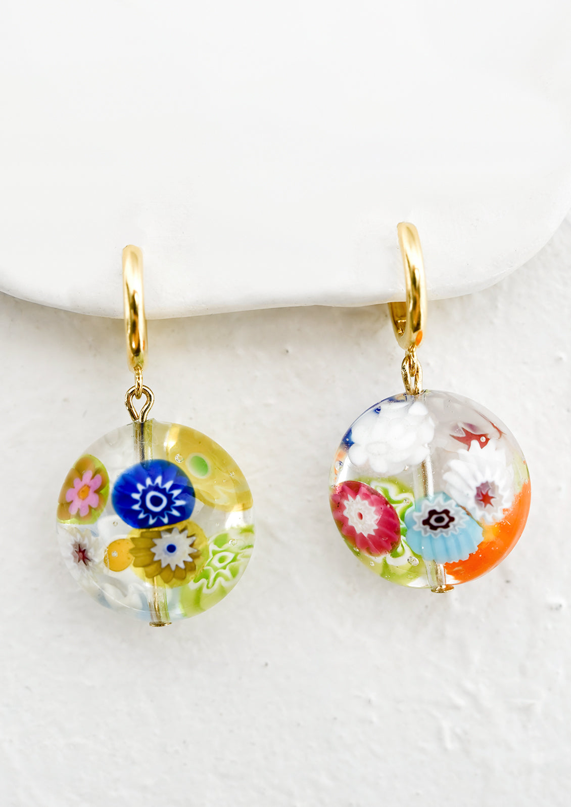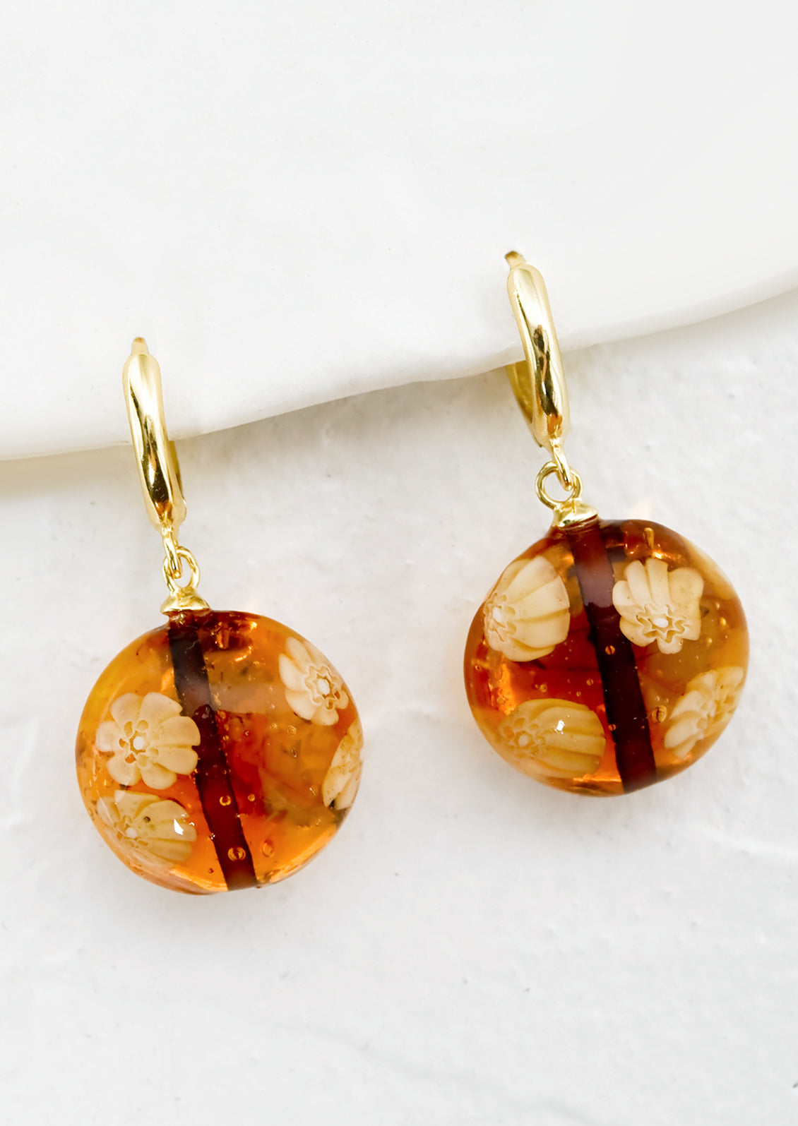 Based in New York City, YAM embraces vintage silhouettes and feel-good materials such as pearls and recycled metals to remind you of what you know and once knew. These golden huggie hoops embrace authentic Italian glass beads in a floral, feminine motif.