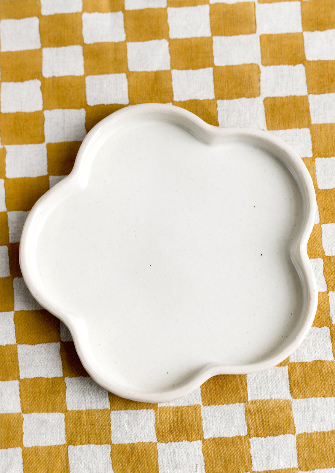 In a simplified flower shape, this au natural plate is handmade in Japan. Use it for a simple breakfast or for serving dessert (or even just for decoration).