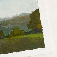 Painted from photos taken on artist Caroline Gray's travels throughout the Southeastern United States and Italy, this tiny landscape oil painting shows off a pastoral scene. An original, one of a kind piece of art, each piece is based on a different location.