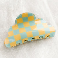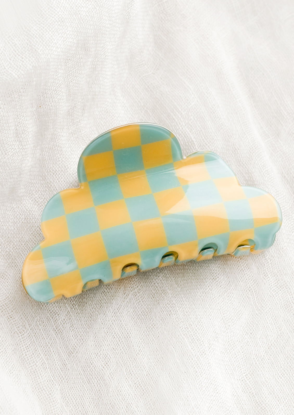 A candy-colored checker print and cloud-like shape come together for a seriously playful piece, crafted in glossy acetate.