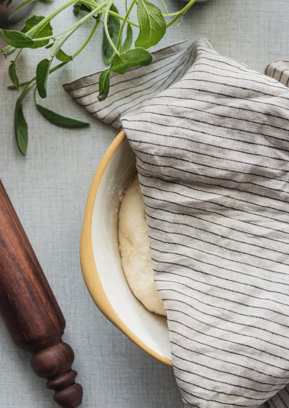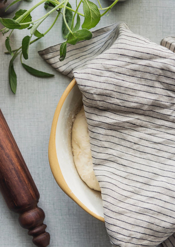 In perfectly lived-in linen, this essential kitchen towel does it all, from cleaning up spills to drying dishes to baking. From Fog Linen Work.