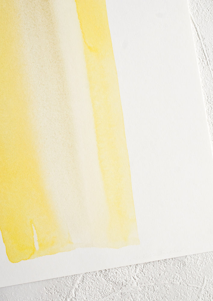• A block printed lumbar pillow in yellow with blue and pink floral print.