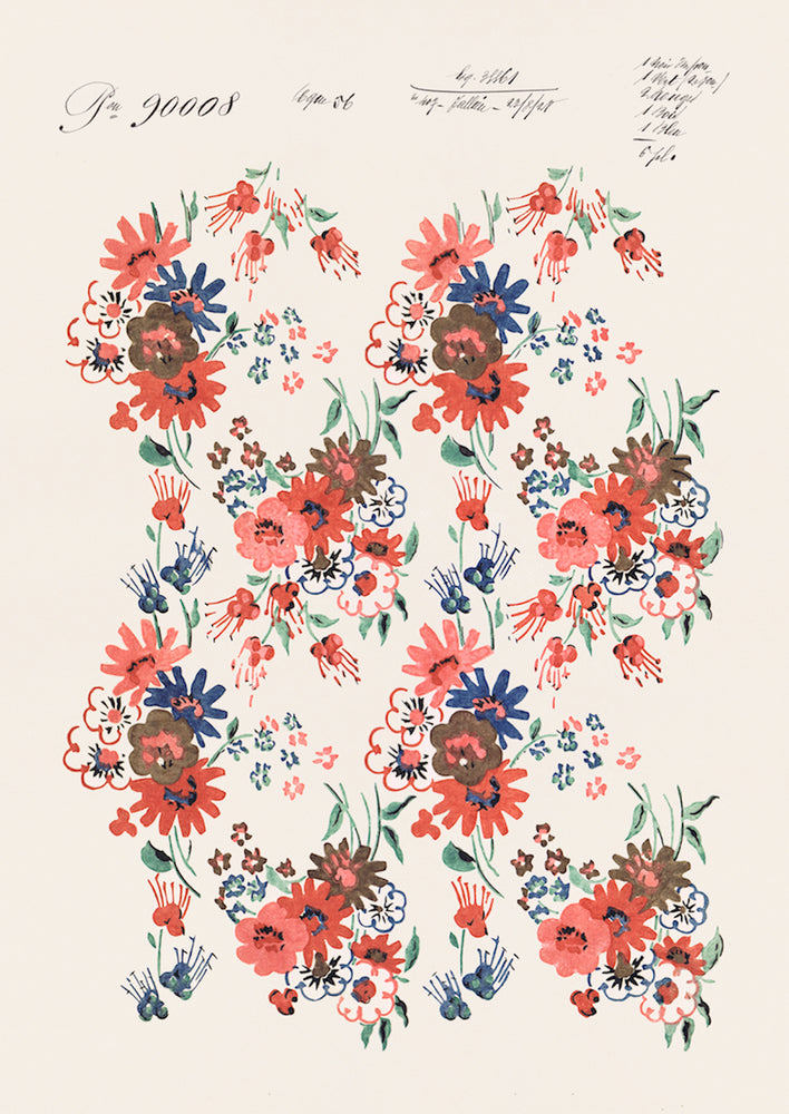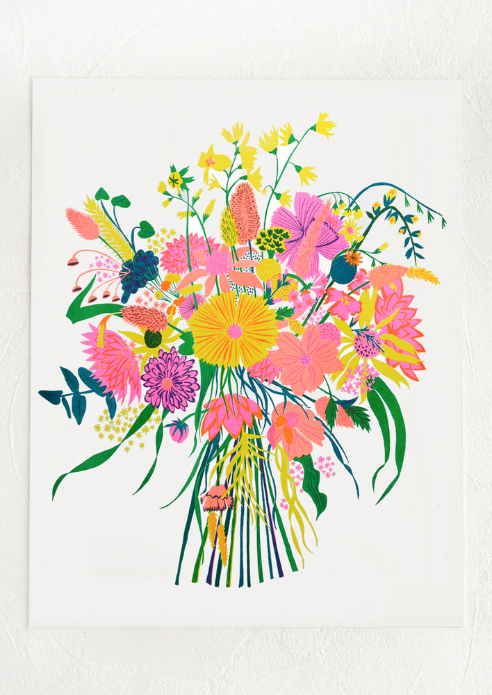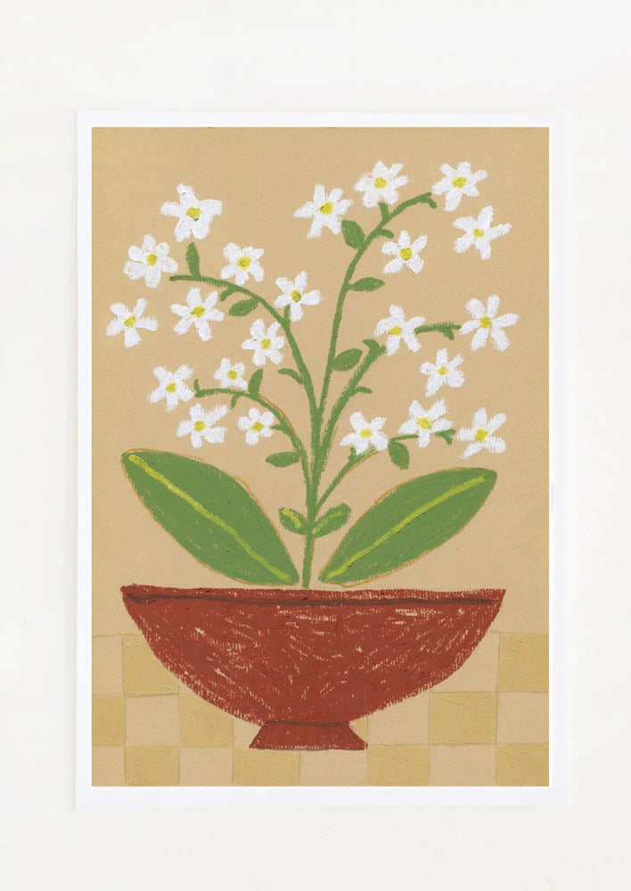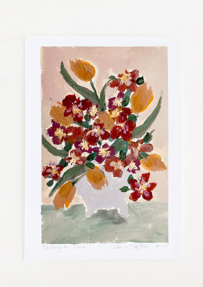 • A digital art print of landscape showing orange and pink flowers in a field.
