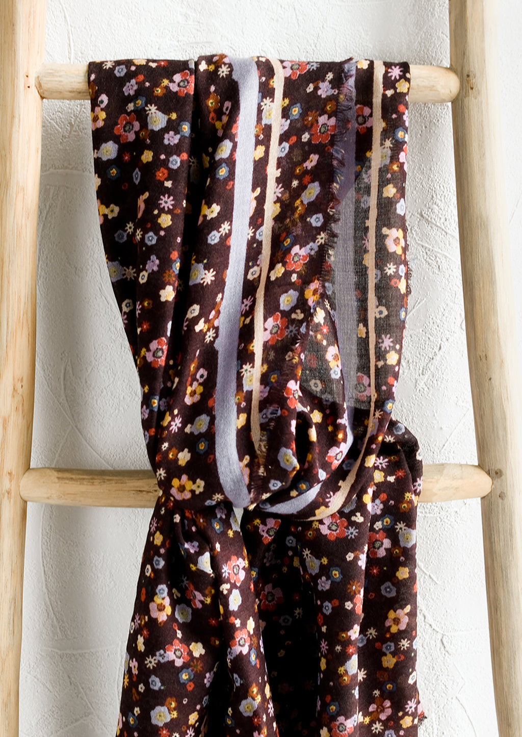 Dusted in a whimsical, retro-inspired floral print, this wool-silk scarf is both lightweight and warm—easily adaptable to unpredictable temps. From Becksondergaard.