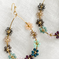 A floral frame forms around a teardrop silhouette on these delicately beaded earrings, perfect for a subtle statement.