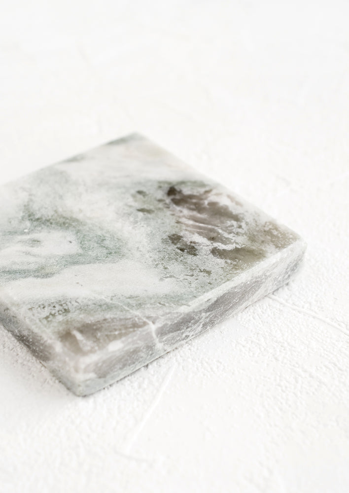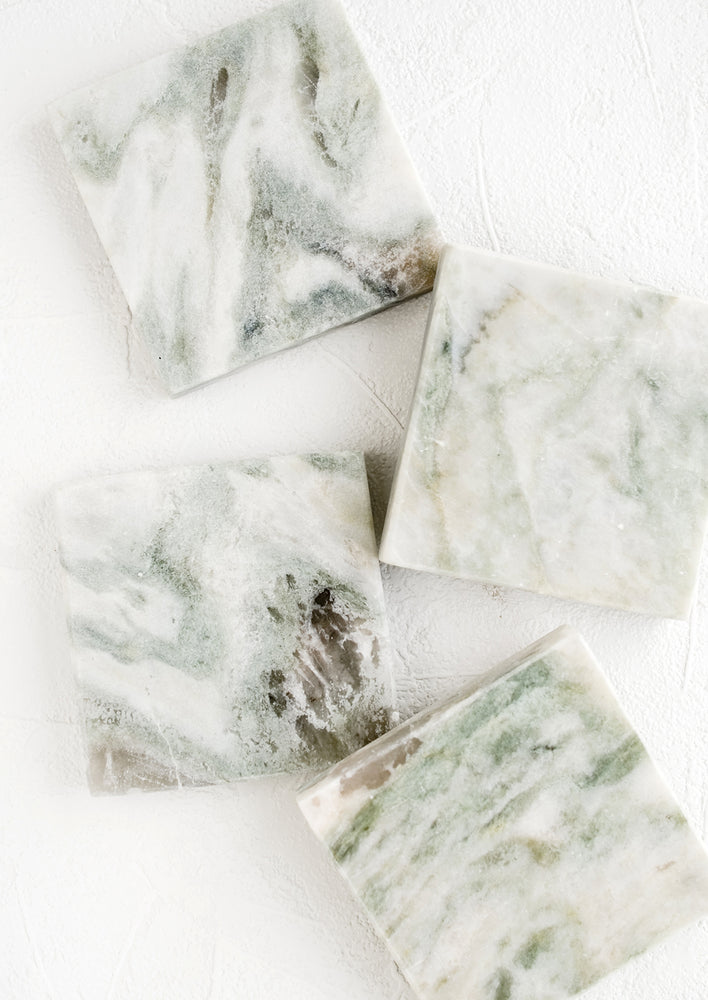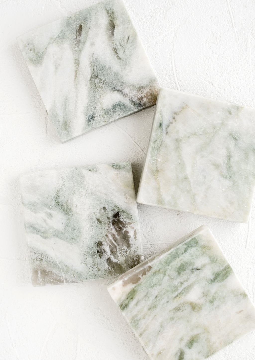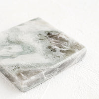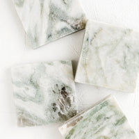 Each of these stunning marble coaster sets is like its own little world, showing off an entirely unique mapping of marble magic in variegated tones of green, grey and white. Please note: each batch is different, tone and shade will vary from set to set.