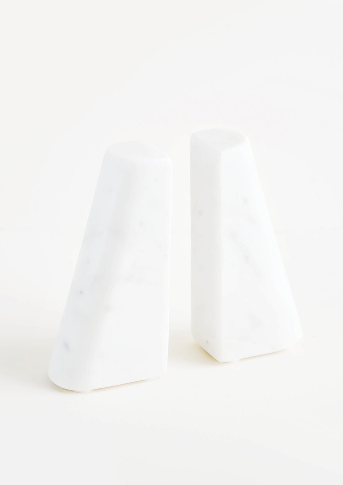 We searched far and wide for a pair of bookends that felt modern but not overly designed, minimal but not boring, and elevated but not ornate (it was a difficult search). Enter these tapered beauties—crafted from solid white marble with a gorgeous matte finish, their sleek silhouette has satisfied our search.