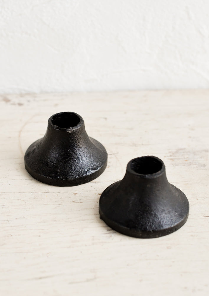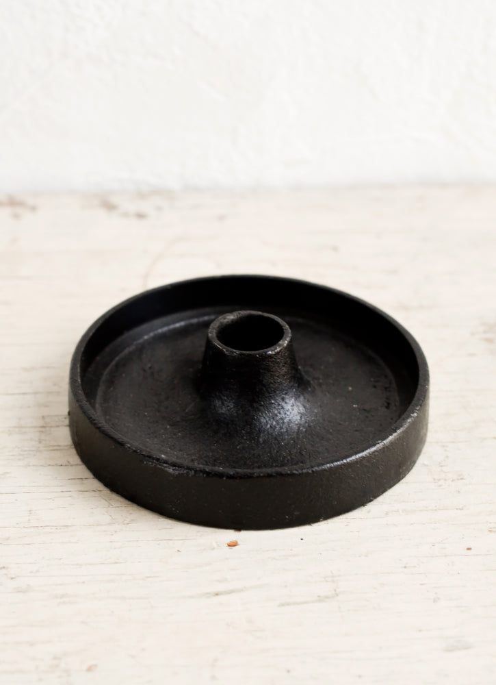 In heavy, solid cast iron (yes, the same kind as the pan in your kitchen, and almost as heavy!), this weighty taper holder holds its own—choose from a smaller, classic style, or a larger trivet version that catches excess wax drips.