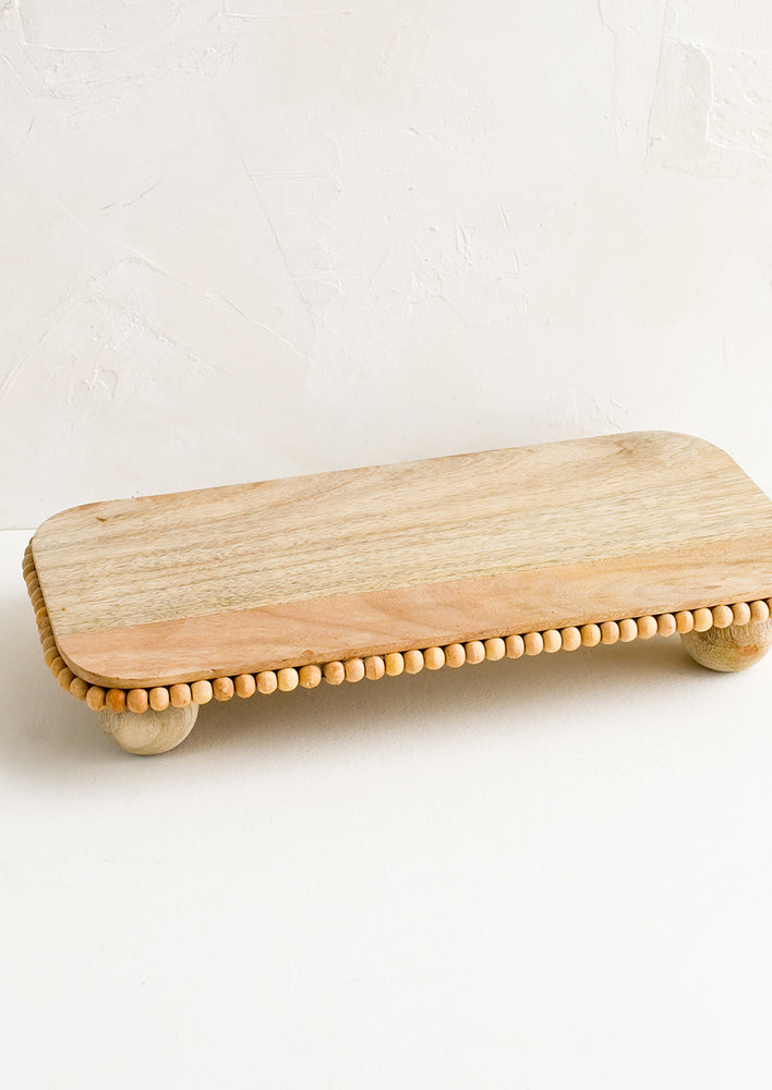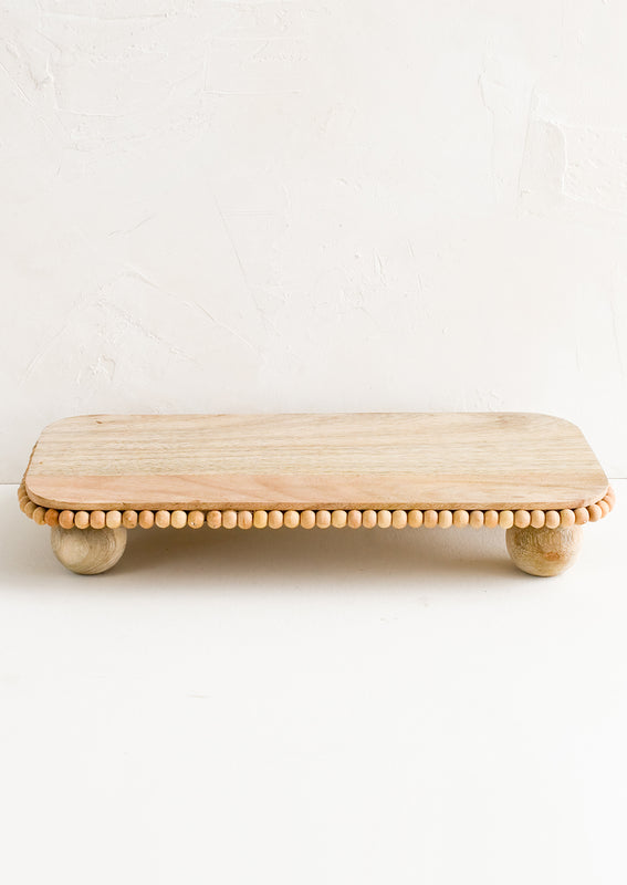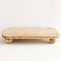 For keeping things tidy, this wooden riser creates a natural divide on the vanity, in the kitchen, or in the bathroom. A beaded trim keeps things thoughtfully considered.
