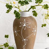 A sweet floral sketch adorns natural, sand-hued ceramic on this not-too-big, not-too-small vase — perfect for any spot that needs a little pick-me-up.
