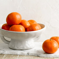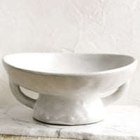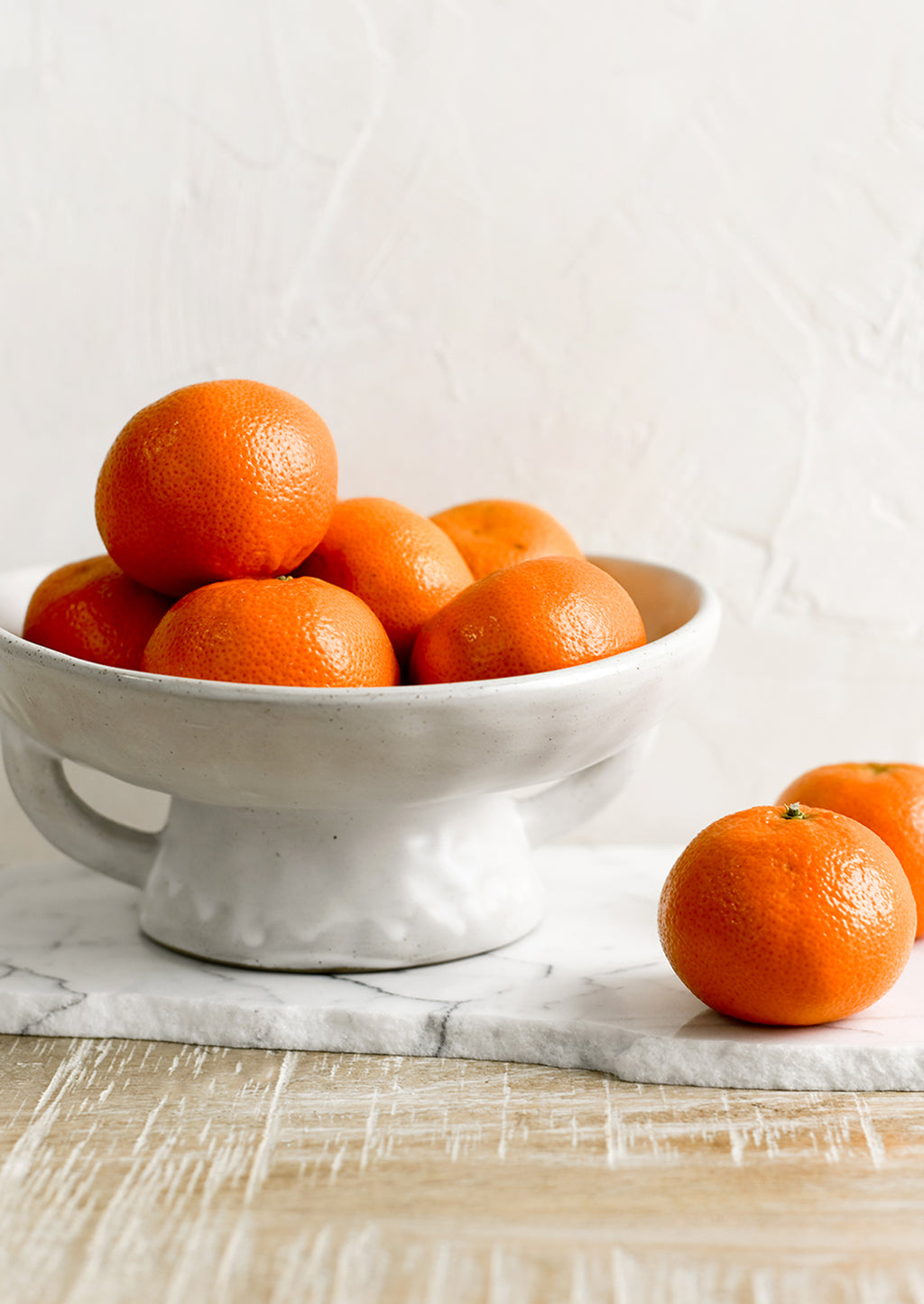 In a glaze soft, white and imperfect, this footed bowl adds height for elevated (quite literally) styling or serving.