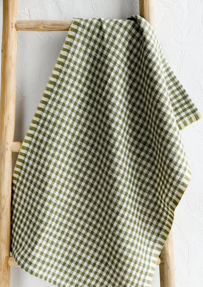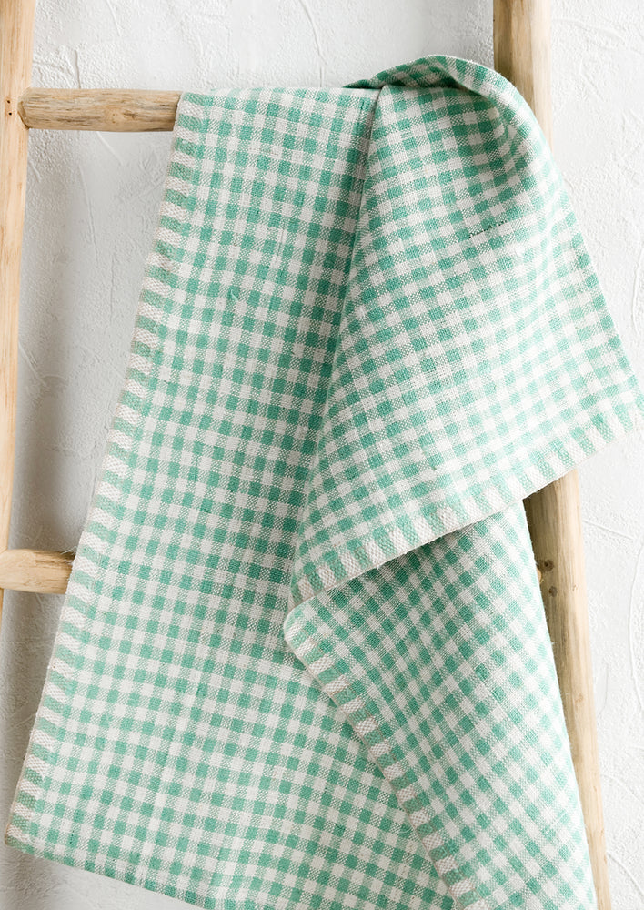 With a hand resembling antique French kitchen linens, this woven linen tea towel shows off a lighthearted gingham pattern, offered in three timeless hues.