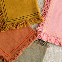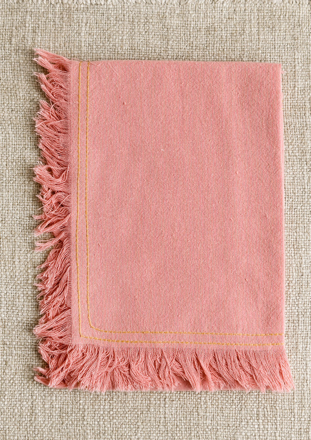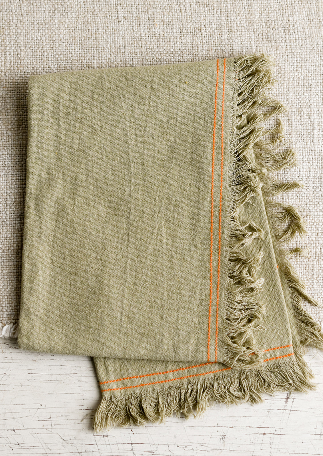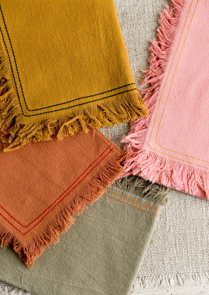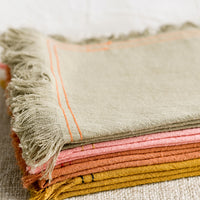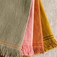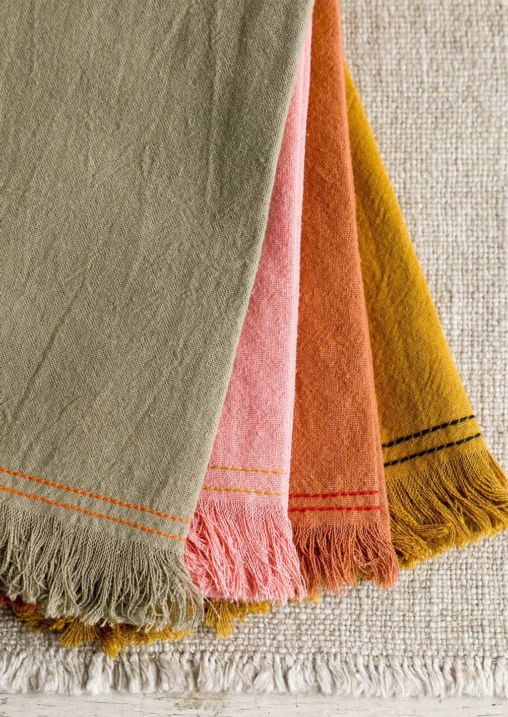 In nature inspired hues, these cotton tea towels show off contrast stitching and a fringed hem — choose from four hues to coordinate or mix and match.