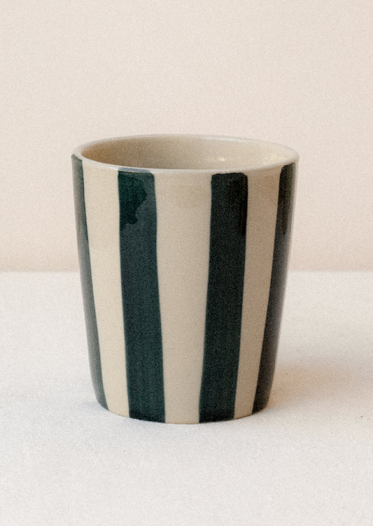 • Two amber glass drinkware pieces on a textured surface with a neutral background