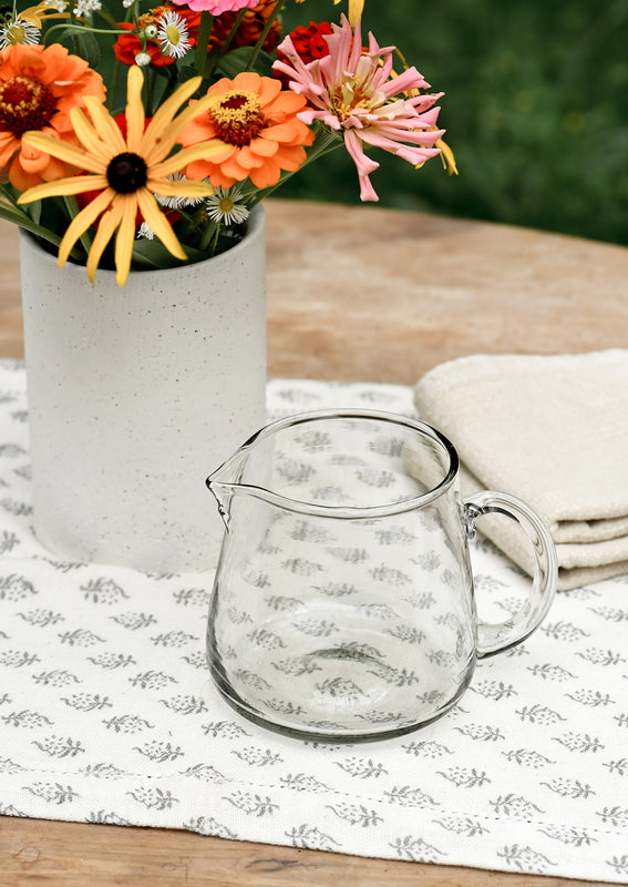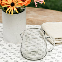 In a size large enough for syrups and salad dressings for a crowd, this recycled glass pitcher is a clear candidate for showcasing any sort of liquid varietal.