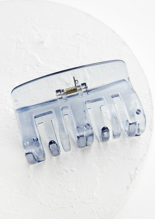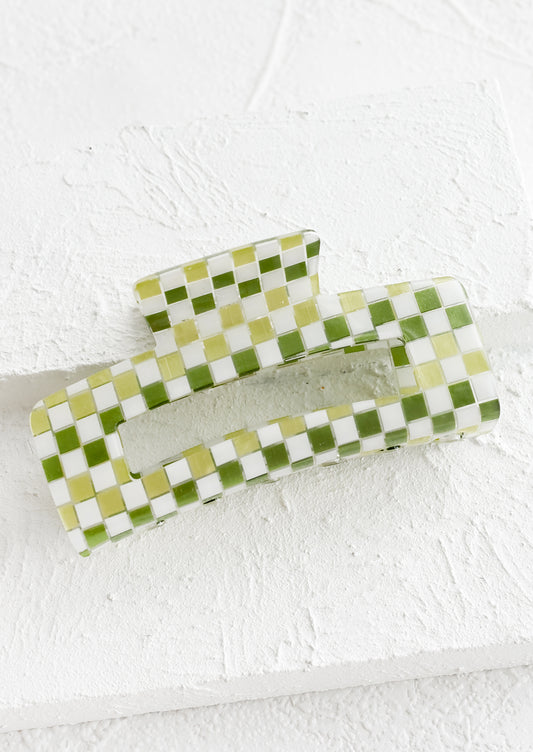 • A pair of open rectangle shaped acetate hair clips in tan and black marble.