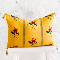 Block-printed by a small workshop run by a nephew and uncle team, this luxurious and expertly-crafted linen pillow exudes the meticulous work the artisans put into it. Its vibrant palette is inspired by the bold, lively colors worn by the local communities in the Thar desert.