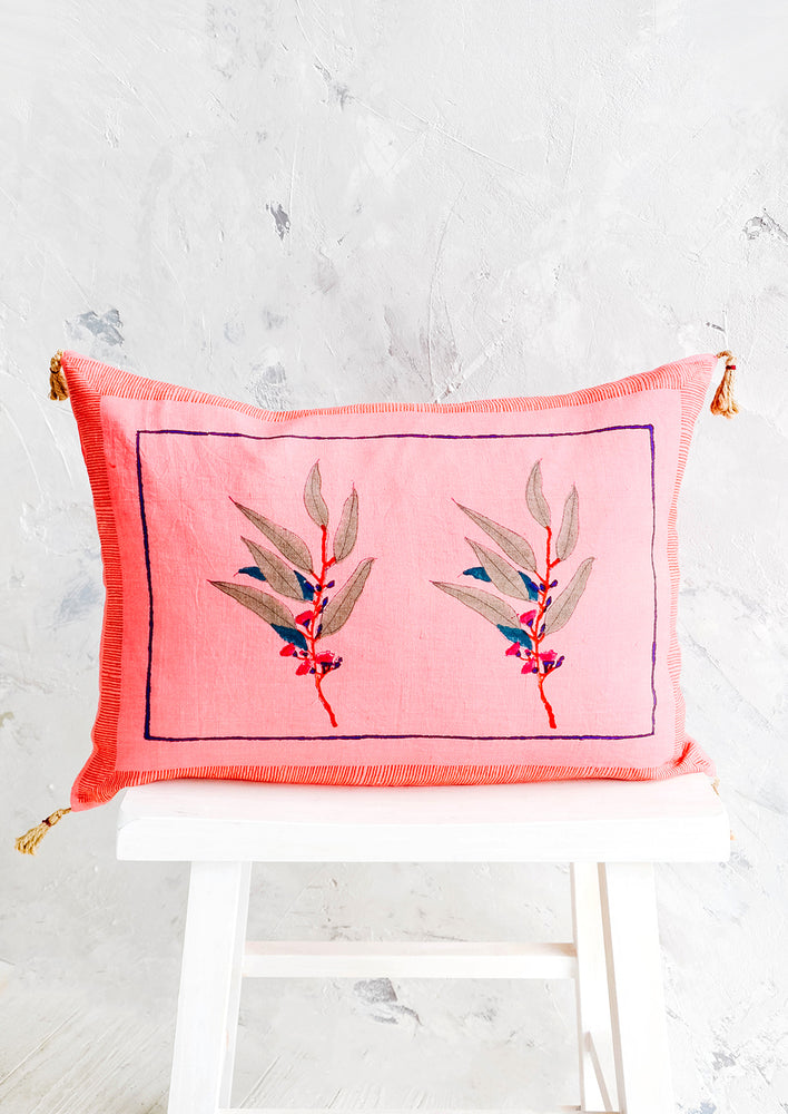 Karen Stripe Pillow in Ivory, Wine & Indigo
