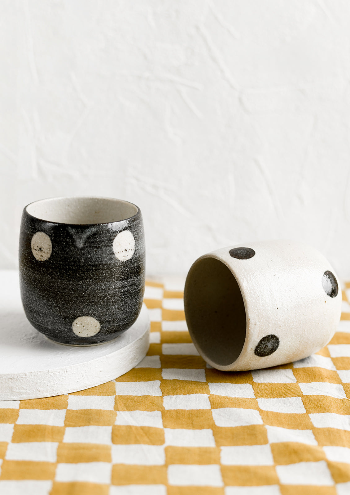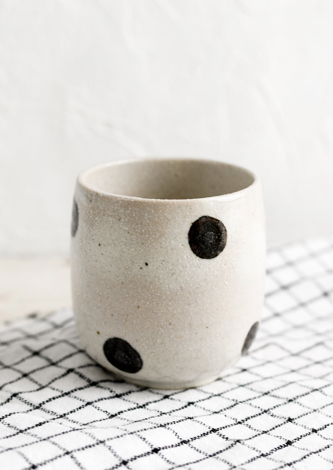 Black and white never goes out of style, and this polka dot printed cups are no exception — handmade in Japan, they embrace wabi sabi imperfection with a slight texture and rustic glaze.
