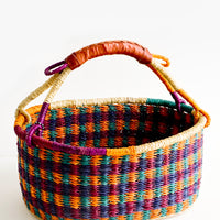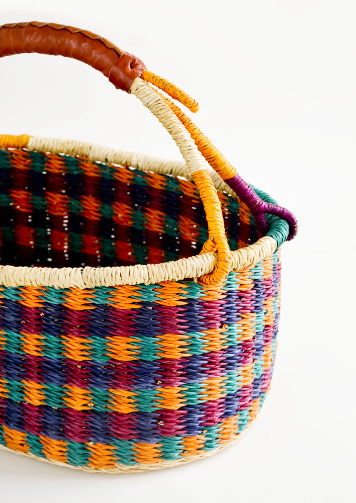 The perfect accessory for gardening and foraging, this African bolga basket is made from all-natural materials—dried grass and genuine leather. If gathering berries and herbs isn't your thing, it also works for magazine storage and the like.