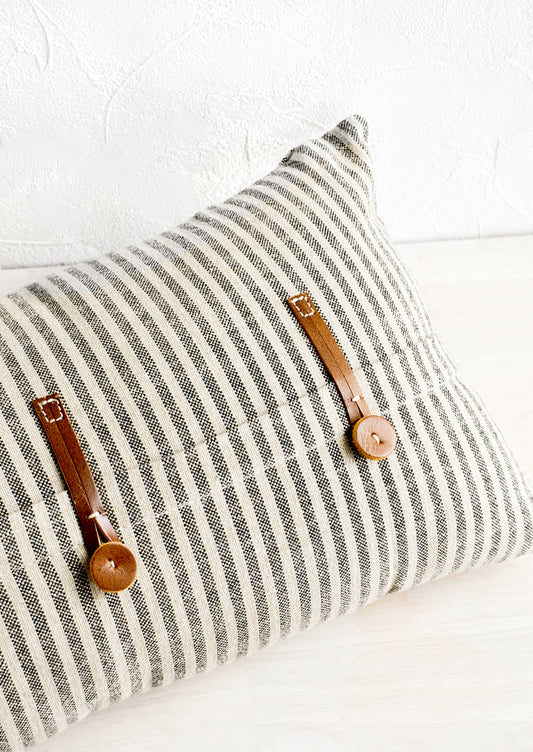 Liam Leather Trim Striped Pillow