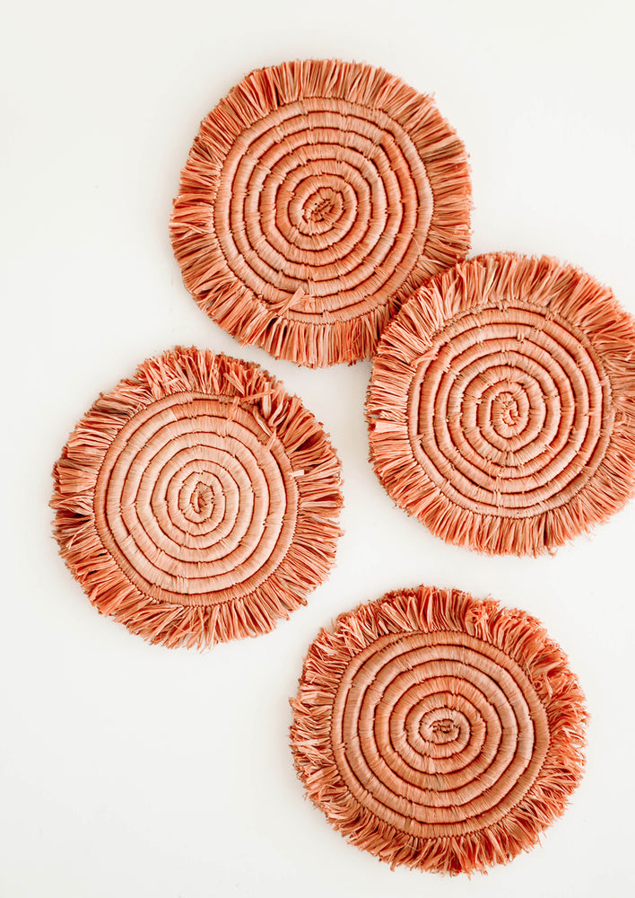 Fringed Raffia Coaster Set