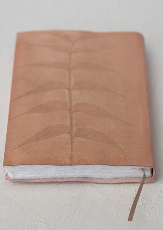 Gorgeously embossed with an impression of a leaf on natural leather, this stunning journal is bound with handmade paper featuring beautifully deckled edges.