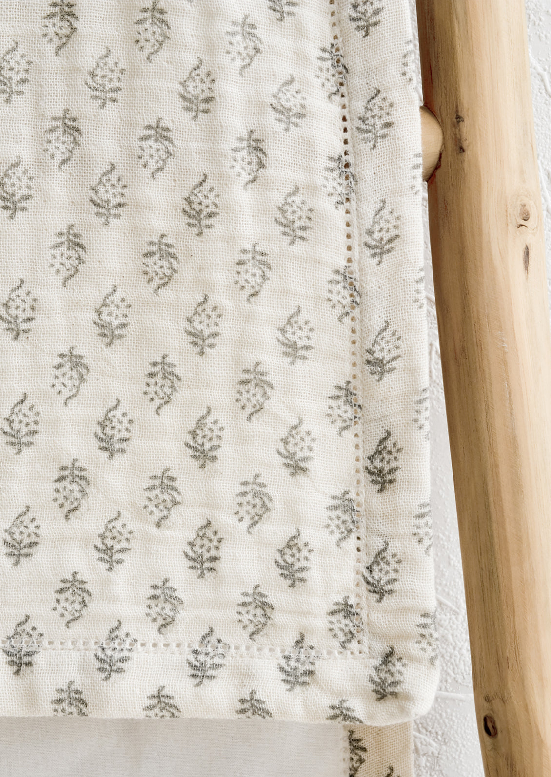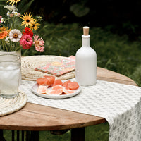 In gauzy, un-dyed cotton with the most perfect, lived-in texture, this table runner gives the perfect touch of softness. A timelessly subtle block print design and intricate hemstitch detailing lend classic appeal.