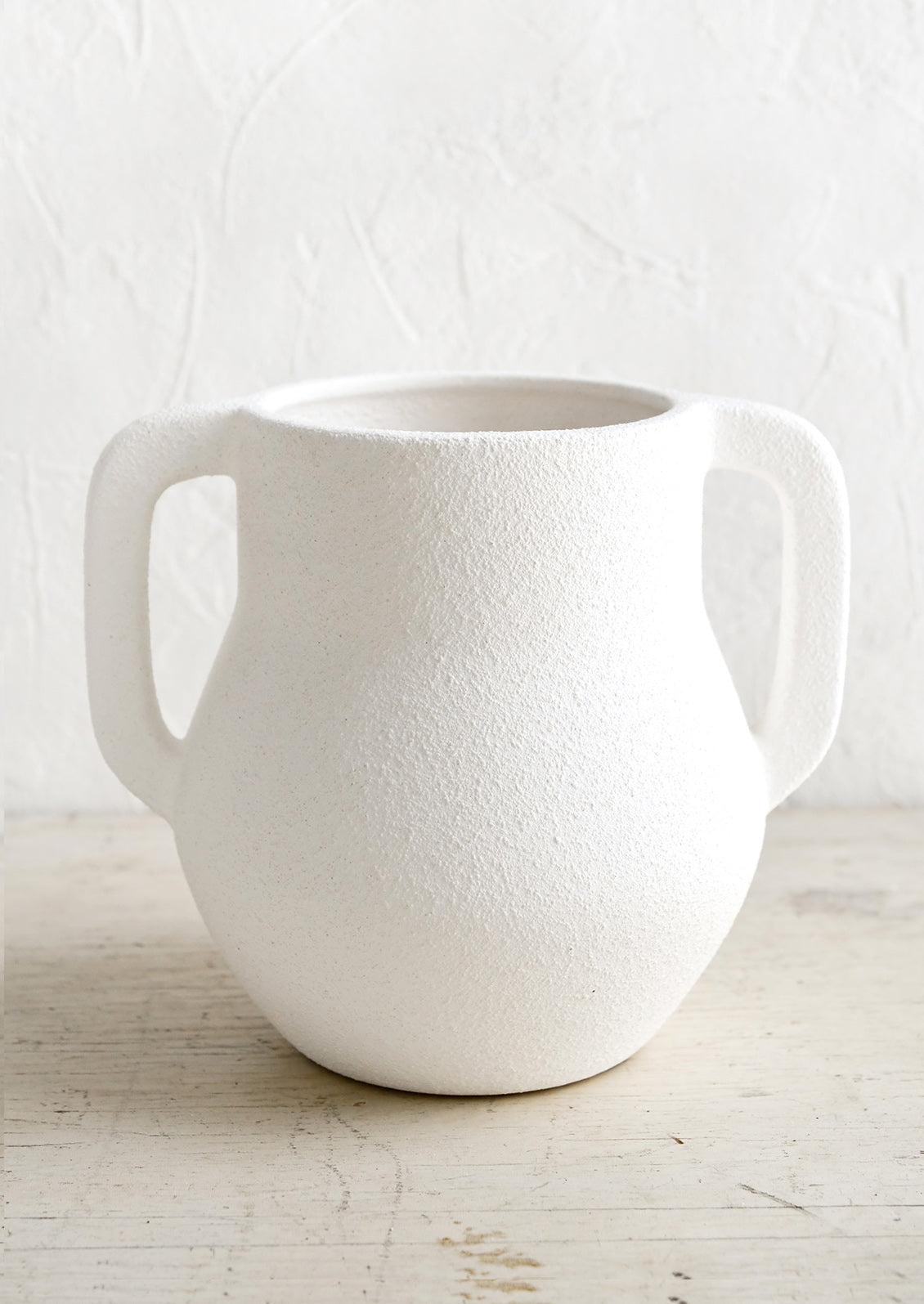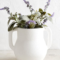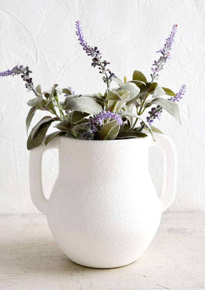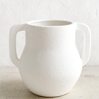 In a plaster-like texture, this architectural vase shows off a statuesque silhouette, beckoning for lush dahlias or fresh cut lavender.
