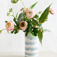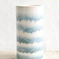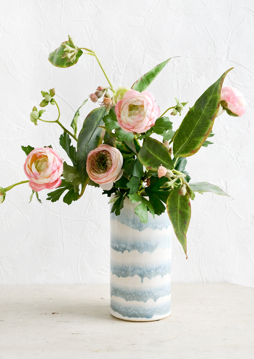 Mottled, imperfect stripes give an airy, beachy feel to this ceramic vase, lending itself to artful arrangements and seasonal greenery.