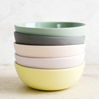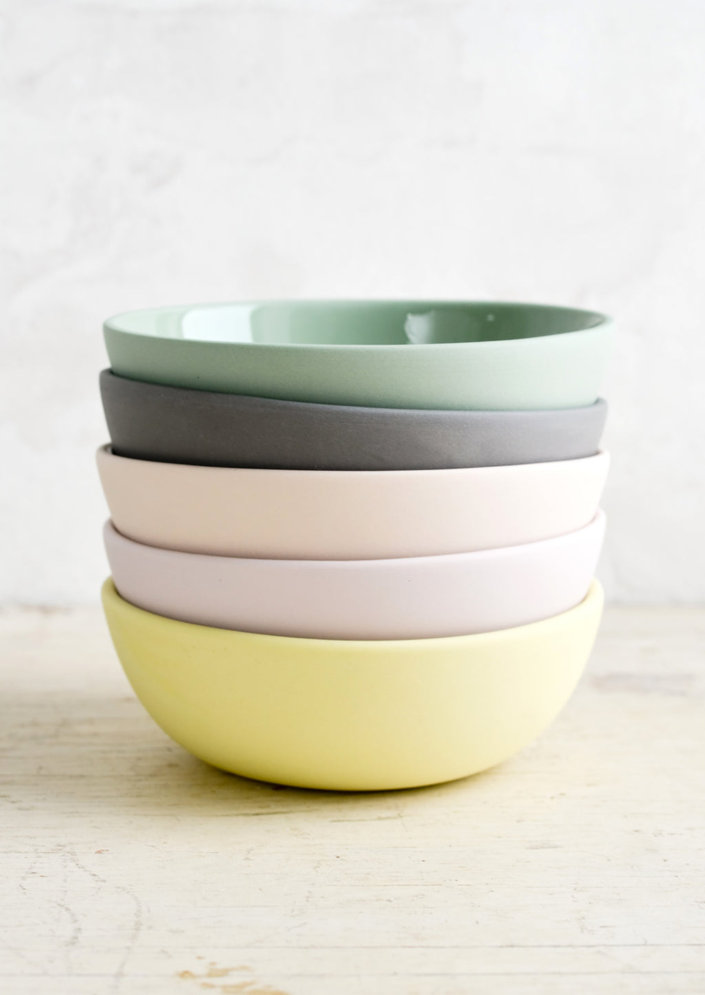 Super smooth to the touch, these porcelain bowls show off timeless, satisfying simplicity. Each hue is custom tinted to perfection, with a matte exterior and glossy interior.