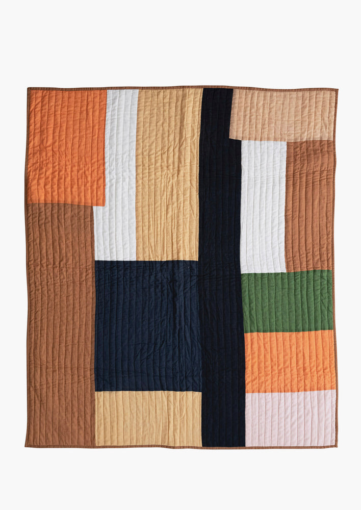 A melange of warm hues comes to life on this channel-stitched quilt, showing off a color blocked composition in pure cotton.