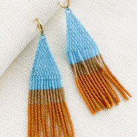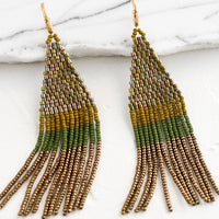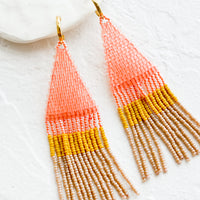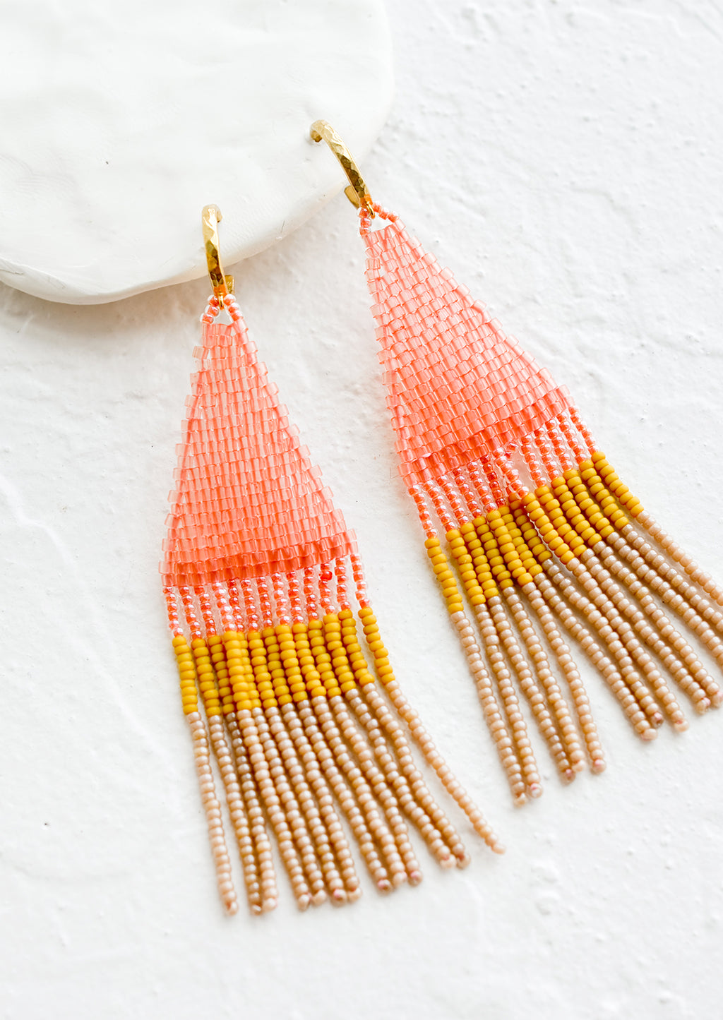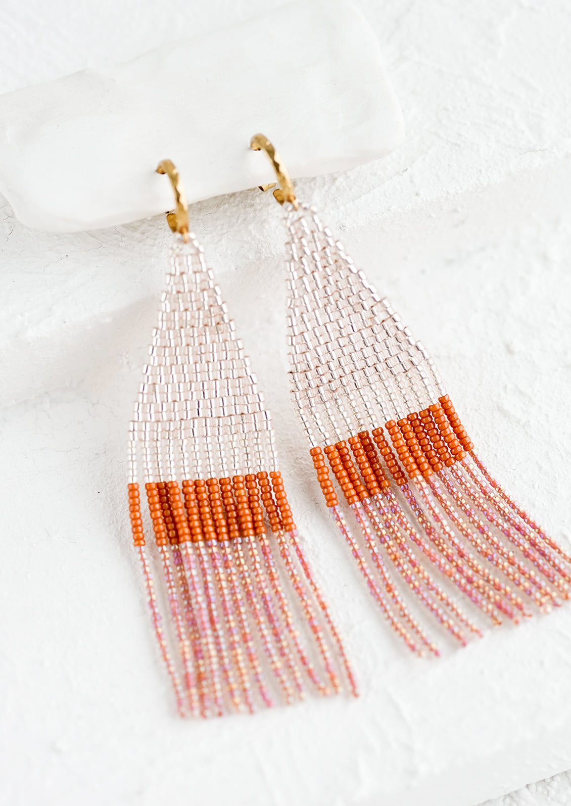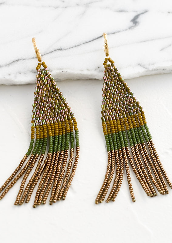 These majestic stunners make a grand impression with intricate beadwork—in a mix of pearlized, metallic and opaque glass beads, the detailed design shimmers in the sunlight. From Bluma Project.