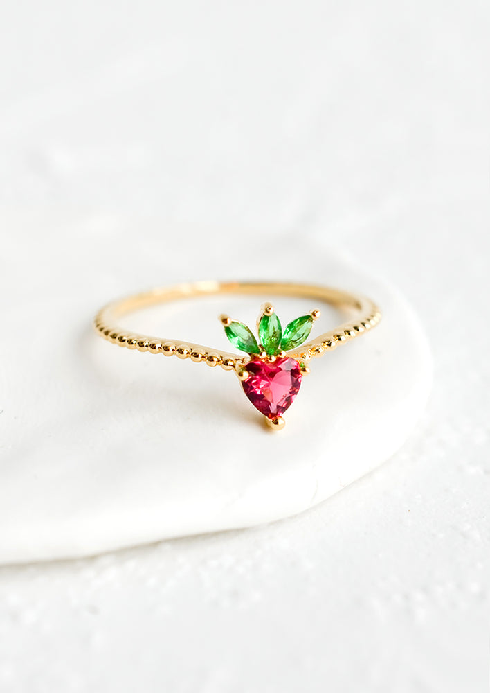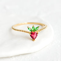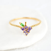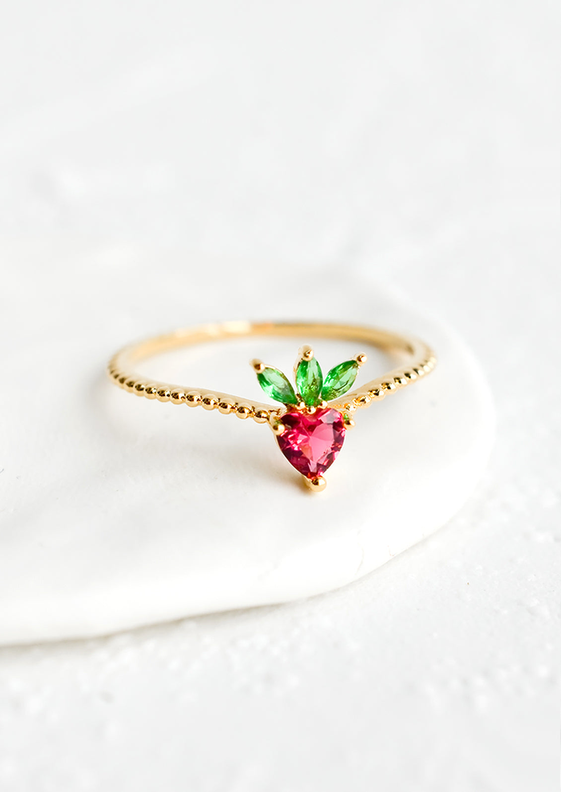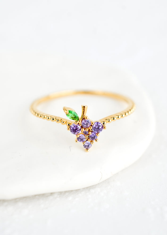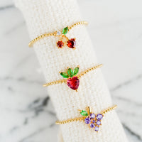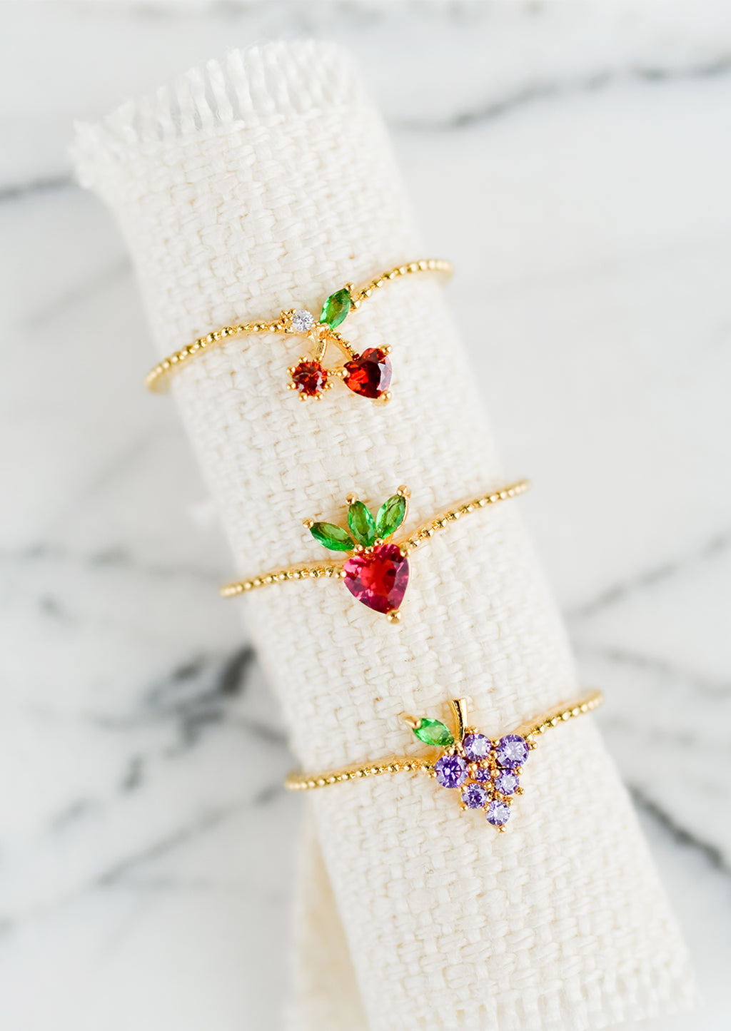 Summery fruits in the tiniest versions of themselves make for a perfectly petite ring for everyday wear—no matter the season. Crafted in the sparkliest of crystals, choose from juicy grapes, cherry or strawberry.