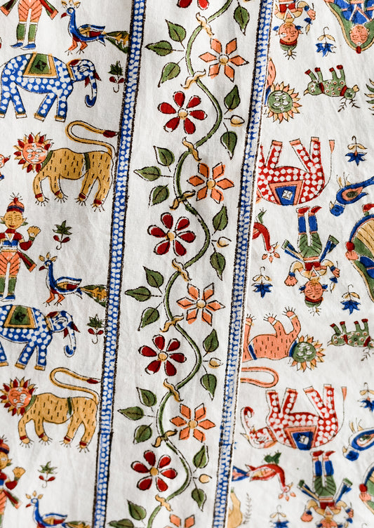 • A carnival printed cotton table runner.