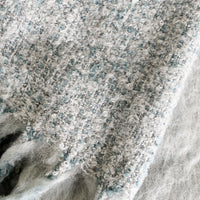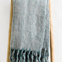 An impossibly soft, mohair-like knit steps in as an everyday indulgence—finished with tasseled trim and a bouclé underside showing off a gorgeous constellation of grey and blue hues.