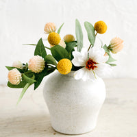 Don't underestimate the size of this small vase—it's surprisingly easy (and enjoyable) to create inventive mini arrangements. We like to use a few spare cuttings from larger arrangements to give a little romanticism to the bathroom or nightstand. This also makes for an adorable bouquet for gift giving.