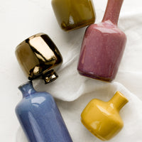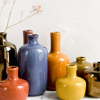 In an intriguing span of colorful glazes, these ceramic bud vases make an impact solo or as a grouping — and their not-too-big, not-too-small size is perfect pretty much everywhere.