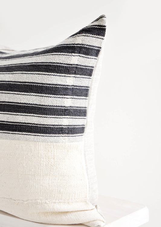Karen Stripe Pillow in Ivory, Wine & Indigo